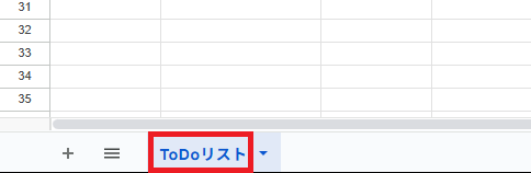 シートタブをダブルクリックすると、シート名が選択されます。この状態で、適切なシート名を入力し [Enter]キーを押しましょう。※ここでは「ToDoリスト」と入力してみましょう。