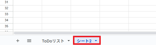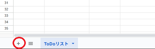 赤丸で示した「+」をクリックすると、新しいシートが右側に追加されます。