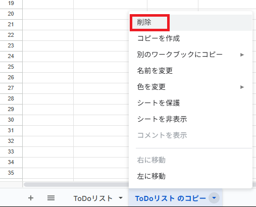 シートタブを右クリックし、「コピーを作成」をクリックすると、右側にコピーシートが現れます。コピーした際は、必ずシート名の変更を行いましょう。